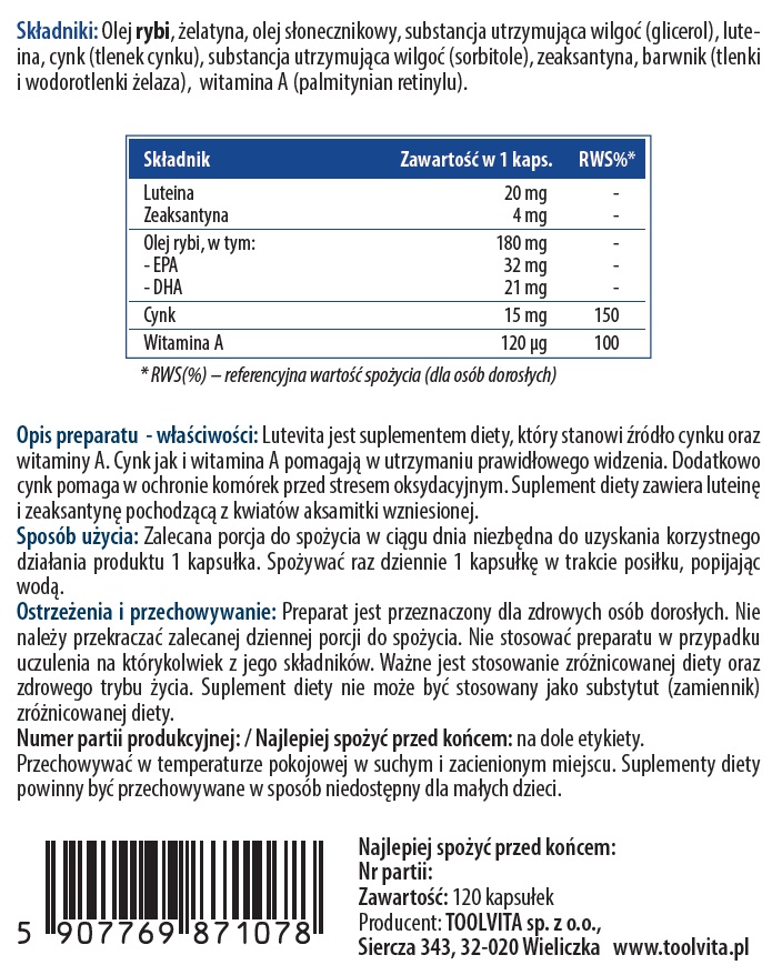 LUTEINA – LUTEVITA, CYNK, A, EPA, DHA