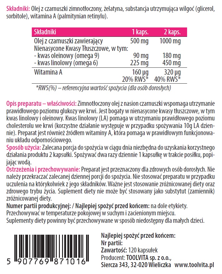 OLEJ Z CZARNUSZKI, WIT. A | 120 kapsułek