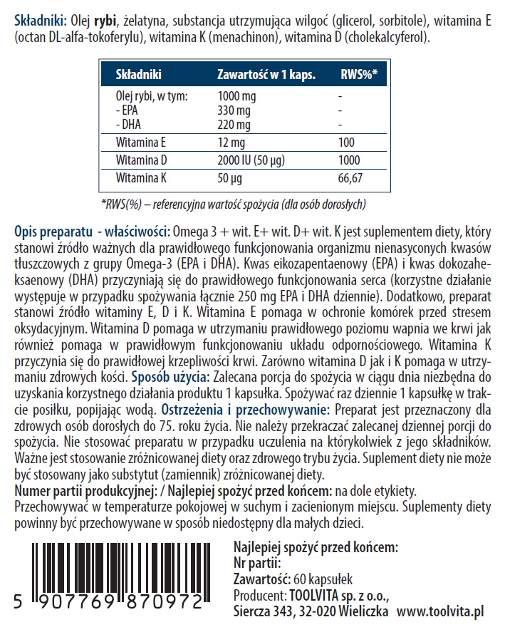 OMEGA 3, WIT. EDK, EPA, DHA | 60 kapsułek